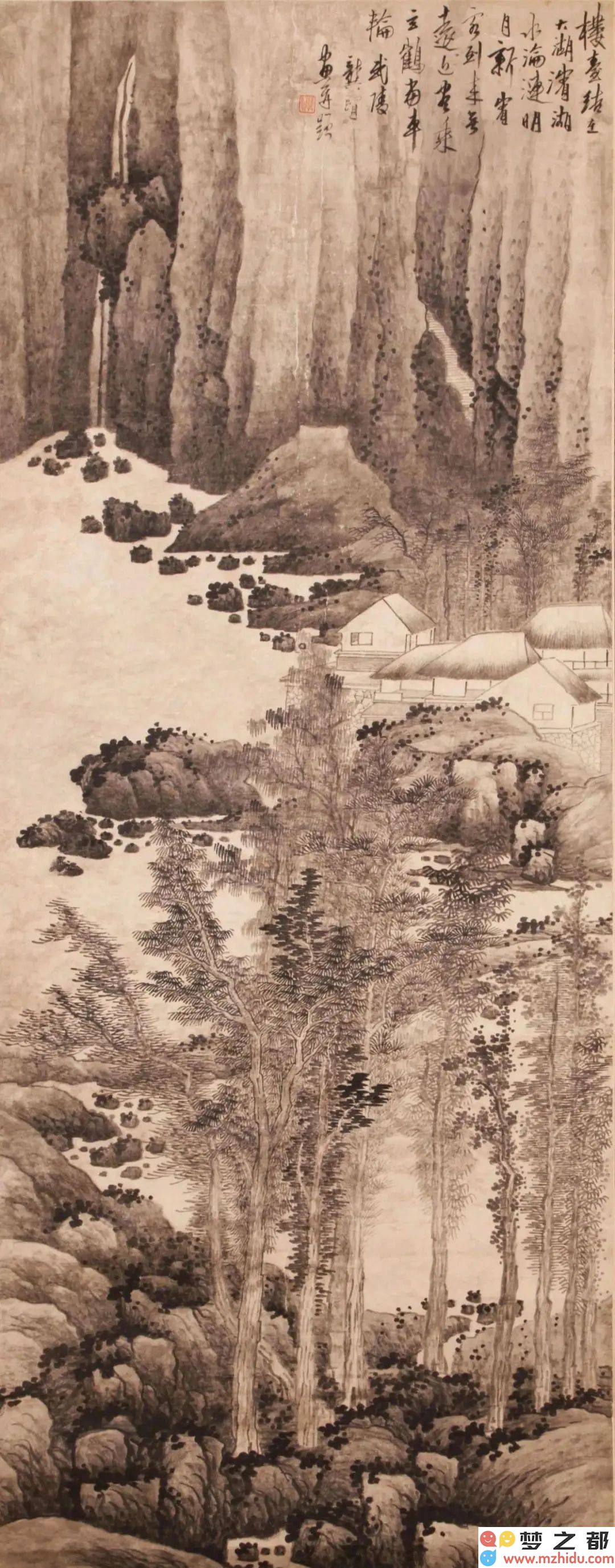 在龚贤的画作中,我们还可以看到“隐然有光”的奇妙效果。无论是山坳里的茅屋还是密林深处的溪涧,都仿佛被雨水泡发般湿润,却又在檐角、石缝中透出点点青光、水光。这种效果,正是龚贤将江南梅雨时节的潮湿空气融入墨中的独特表现。