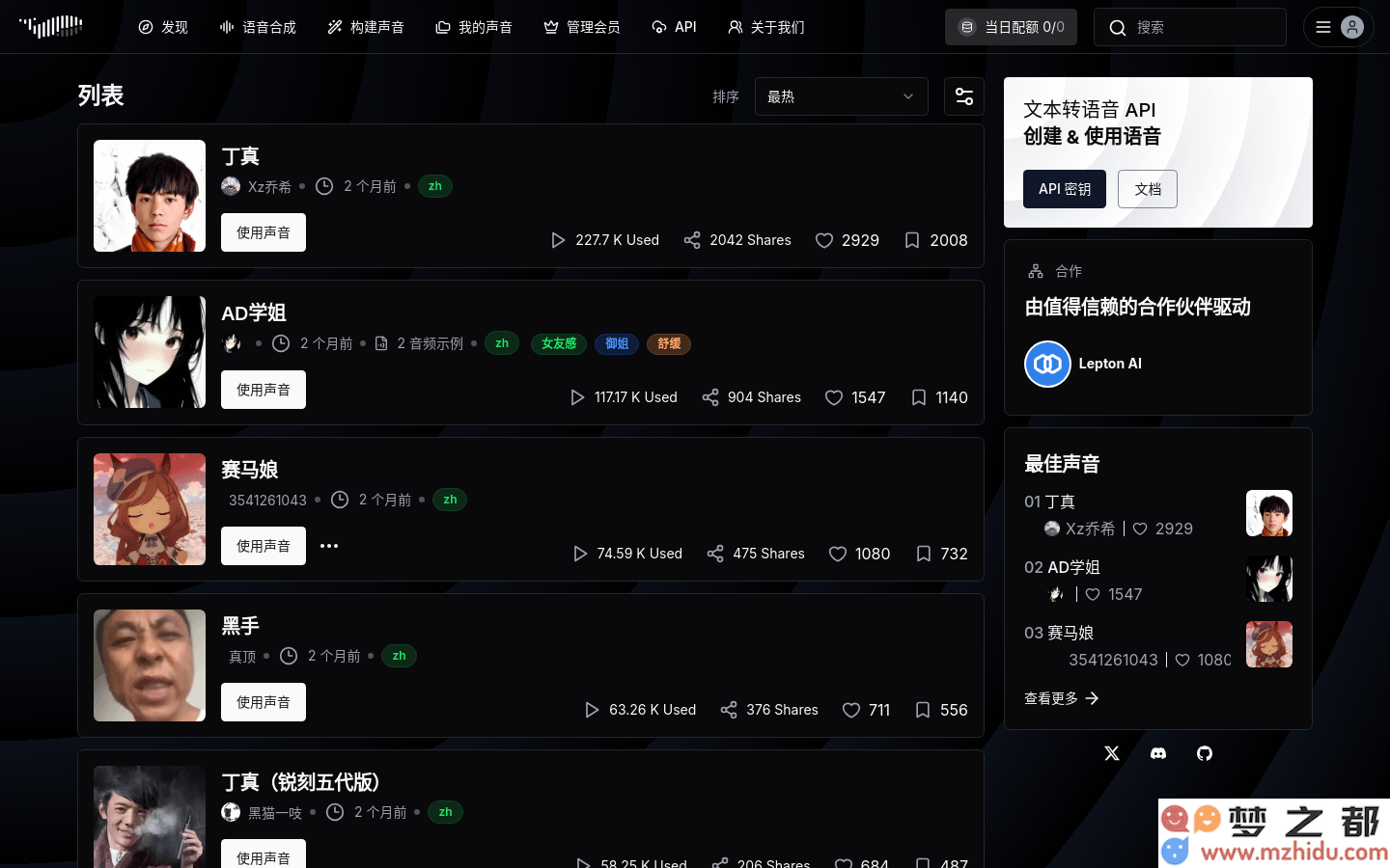 - 声音克隆:用户可以创建和使用自己或他人的声音克隆。