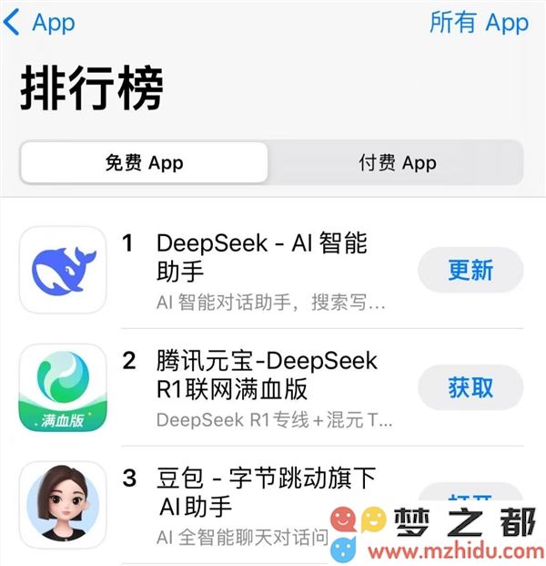 今日,苹果应用商店免费APP下载排行榜上传来新消息,腾讯元宝凭借出色的表现,成功超越豆包,升至中国区榜单的第二位,仅次于持续稳居榜首的DeepSeek。