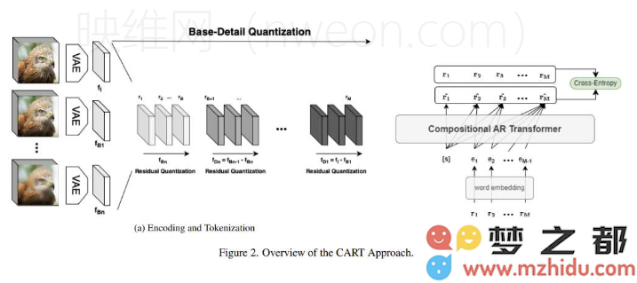 该模型的训练包括三个主要步骤:首先将每个训练图像分解为多个层次的基本细节因素;接着,利用矢量量化变分自编码器(VQ-VAE)对这些因素进行编码,确保在降低维数的同时保留图像的关键特征;最后,采用 Transformer 解码器架构进行细节因素的迭代预测,从而实现图像细节的可控和逐步添加。