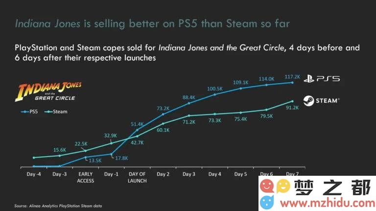 据Alinea Analytics的销售数据估算,尽管《夺宝奇兵:古老之圈》在Steam和Xbox平台早已上市,但PS5版本却在短短六天内售出了11.72万份,这一成绩截止至2025年4月23日。相比之下,Steam版在相同时间段的销量仅为9.12万份,尽管其后来的增长幅度达到了28%,累计销量也达到了约31万份,但PS5版的最终销量预计仍将超越这一数字。