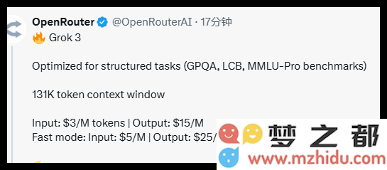 入口:https://openrouter.ai/x-ai/grok-3-beta