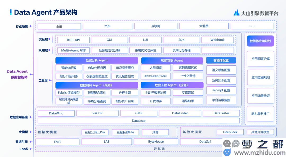 高质量的知识数据是企业大模型落地的关键。无论是模型的精调,还是基于数据构建的企业知识中台,都需要将数据转化为知识,再通过智能体实现知识的透传,最终实现智能应用。火山引擎的Data Agent通过多模态理解技术,将非结构化信息转化为可量化、可计算的数字资产,如将用户评论转化为商品标签,将直播间热度转化为仓储物流预警系数。