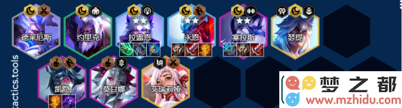 要点5:该阵容其实跟赌怪阵容的原理一致,在2-3阶段打出连胜压制,在4阶段有6夜幽除橙卡外全员两星基本血量不会太低,基本不要想着死在八级一直梭哈