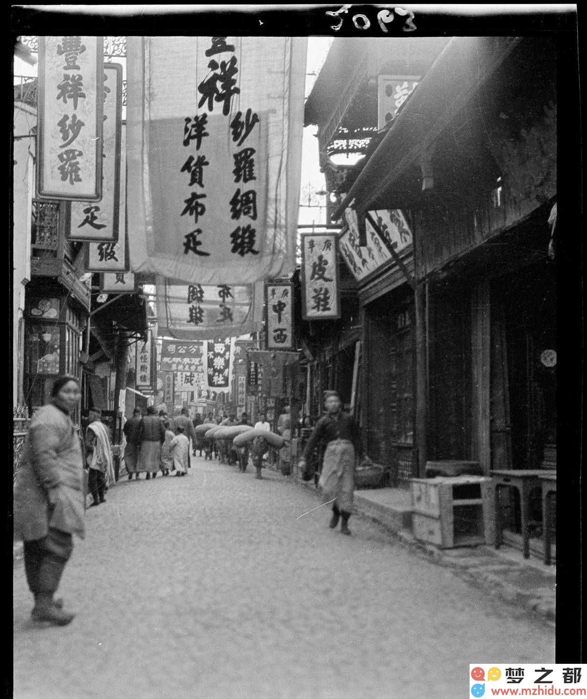 再将视线转向江苏南京,一张商业街与牛同框的照片,记录了那个时代城市与乡村生活的交融,以及商业活动的繁荣景象。
