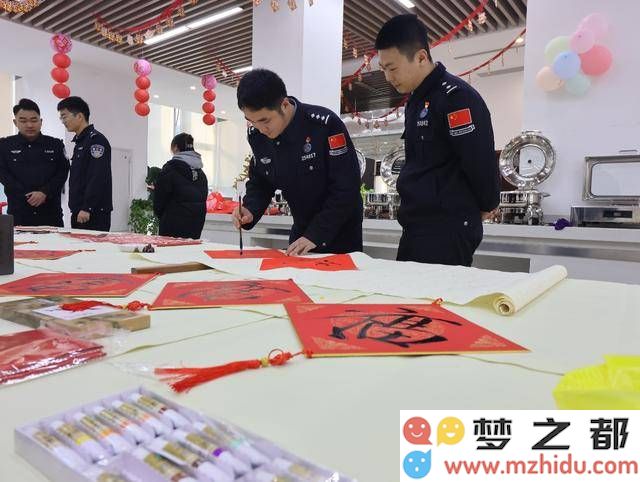 民警们也被这股浓厚的艺术氛围所感染,他们纷纷围在名家身边,认真观赏每一笔每一划的韵味,有的甚至主动请教,积极参与到创作中来。一张张饱含着新春祝福的“福”字、一副副寓意吉祥的对联、一张张充满年味的年画,在警营内不断涌现,让每一位在场的民辅警都感受到了浓浓的年味和深深的祝福。