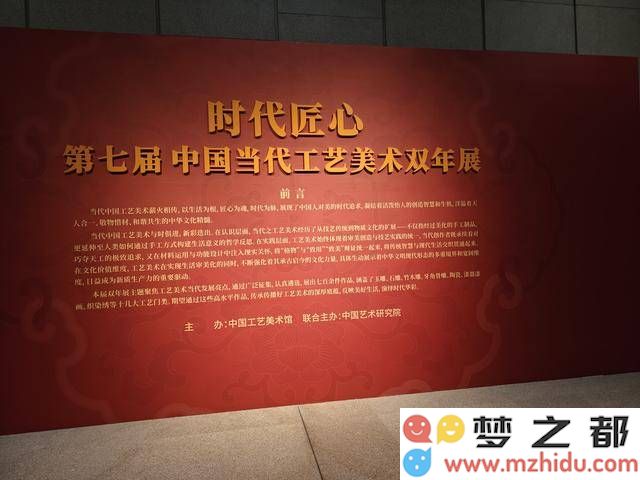 走进美术馆四层,首先映入眼帘的是四块红色主题展板,它们不仅装饰精美,还成为了观众拍照打卡的热门地点。展览分为“承古启今”“巧夺天工”“薪火相传”“演绎华彩”四个主题展厅,每个展厅都以独特的视角展现了工艺美术所蕴含的精神内涵和艺术价值。