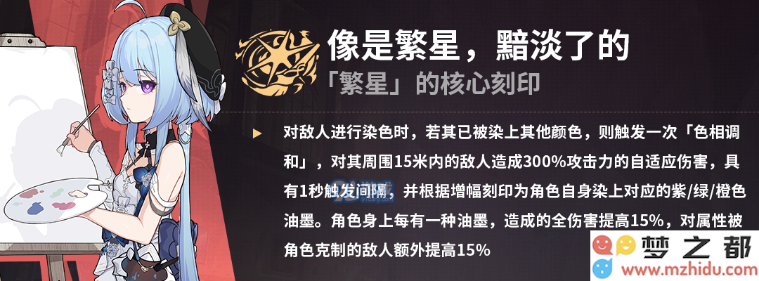 理律能够轻松的触发繁星的红颜料,在小怪层体验较佳,其余刻印则主要用来提高BOSS层伤害,由于小怪层中染色频率不足因此选择优先级比较靠后。