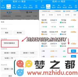 - 选择您的出行日期、始发站和到达站,点击筛选,选择可使用积分兑换的车次。